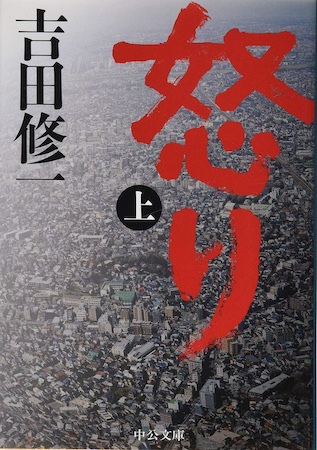 若い夫婦が自宅で惨殺され、現場には「怒」という血文字が残されていた。犯人は山神一也、二十七歳と判明。しかし、その行方は杳として知れず捜査は難航していた。事件から一年後の夏――。千葉の港町で働く槙洋平・愛子親子、東京の大手企業に勤めるゲイの藤田優馬、沖縄の離島で母と暮らす小宮山泉の前に、身元不詳の三人の男が現れた。