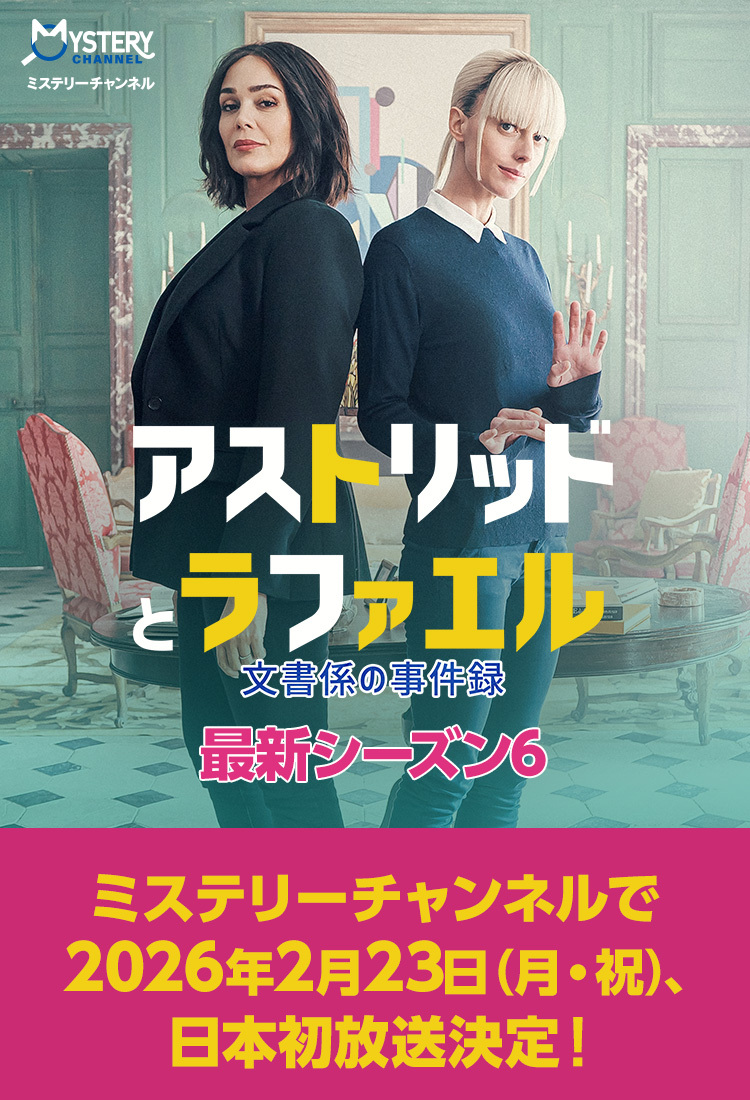 世界各国の上質なドラマをお届けする日本唯一のミステリー専門チャンネル。「名探偵ポワロ」「アガサ・クリスティー ミス・マープル」「シャーロック・ホームズの冒険」「ヴェラ~信念の女警部~」など英国の本格ミステリーをはじめ、「アストリッドとラファエル 文書係の事件録」などのヨーロッパの話題作や「刑事コロンボ」といった名作、そして人気小説が原作の日本のミステリーまで、選りすぐりのミステリードラマが集結!ミステリーチャンネルだけでしか見られない日本独占初放送の最新作から、時代を超えて愛される名作まで、幅広いラインナップを放送!